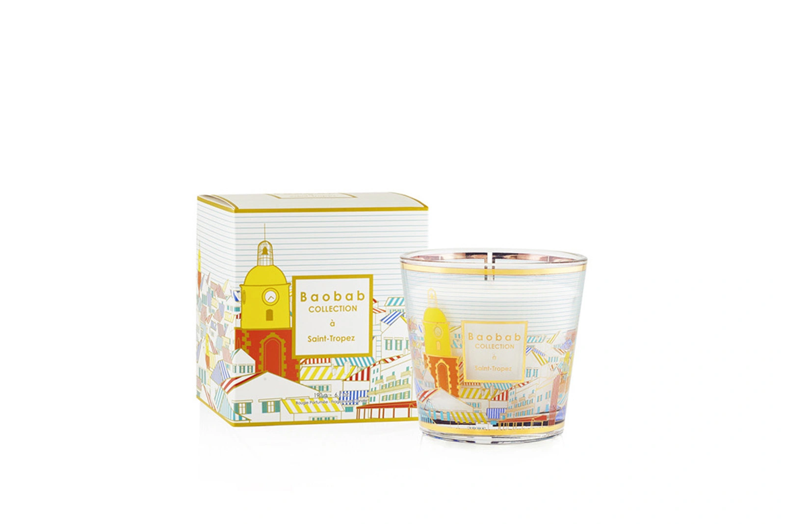 Holen Sie sich den mediterranen Sommer in Ihr Zuhause! Die Duftkerze St. Tropéz aus der Kollektion My First Baobab duftet herrlich sommerlich nach Cassis, frischer Minze und belebendem Rosmarin.Das Siebdruck-Design auf dem mundgeblasenen Glas und auf der Verpackung zeigt ein Bild der mediterranen Stadt St. Tropéz mit seinem berühmten Kirchturm. Den Hintergrund bildet ein zartes Streifenmuster und der obere Rand ist golden. Der Aufdruck enthält echtes Gold (9 Karat) und Platin.Geschenktasche gratis!! Bei uns bekommen Sie zu jeder Bestellung von Duftkerzen, Raumduft-Diffusern oder den Mini-Totems von Baobab eine schicke Baobab-Geschenktasche dazu. Abmessungen, Brenndauer und Gewicht der verschiedenen Größen: