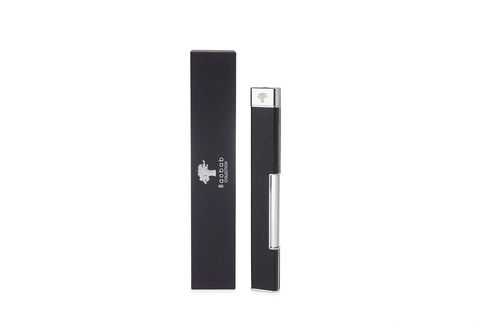 Feuerzeug in schwarzem VollnarbenlederDieses edle Feuerzeug mit seiner Ummantelung aus schwarzen Vollnarbenleder nimmt den Platz als hochwertiges Accessoire in Ihrem Zuhause ein. Das 18cm hohe Feuerzeug hat eine perfekte Größe, um sicher und komfortabel auch große Kerzen anzuzünden. Die effiziente und zeitgemäße Fackelflamme macht es zu mehr als nur zu einem hochwertigen Dekorationsobjekt. Baobab CollectionInspiriert durch die intensiven Farben, betörenden Düften und mächtigen Affenbrotbäume entstand die einzigartige Marke Baobab. Die beeindruckenden Produkte versetzen Sie durch ihr Design und ihre internationalen Inspirationen mit ihren charakteristischen Farben und Düften an die exotischen und wundervollen Orte dieser Welt.