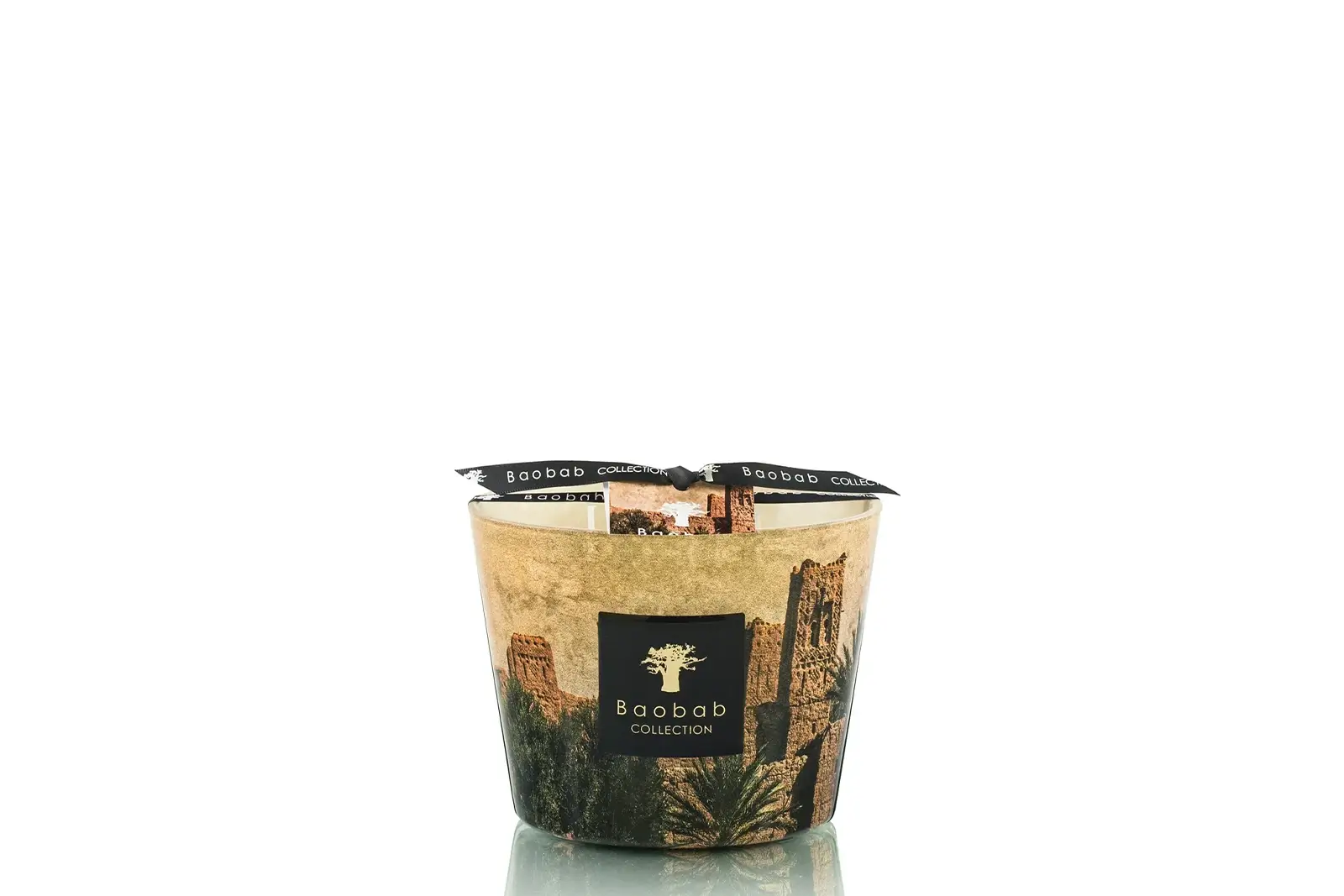 Baobab Duftkerze Orientalist – Skoura – Limited EditionZeder, Amber und WeihrauchDer orientalische Duft von Zeder, Bernstein und Weihrauch umrahmt die Stadt Skoura in einzigartiger Textur- Skoura -Eine Hommage an den größten Palmenhain im Süden Marokkos, Skoura, der sich über 27 Kilometer Wanderwege erstreckt, auf denen Palmen, Douars und Kasbahs diese magische und majestätische Gegend prägen. Die von Serge Anton verewigte Kasbah erinnert fast an eine mittelalterliche Burg, und die künstlerische Arbeit des Fotografen kommt in einer Oberfläche zum Ausdruck, die an gealtertes graues Papier erinnert. Von den drei Kerzen der Sammlung Orientalist kommt Skoura der einzigartigen Textur einer Museumsleinwand wohl am nächsten.Die Duftkerzen der Baobab CollectionJede Baobab-Duftkerze ist ein erlesenes Stück Handwerkskunst. Das edle Wachs (zu 90 % veredeltes Minaralwachs) wird von Hand in die mundgeblasenen Gläser gegossen. Es hat eine sehr gute Brennqualität. Die Dochte werden in Europa aus ägyptischer Baumwolle hergestellt.Diese tollen Unikate eignen sich auch perfekt als Geschenk.