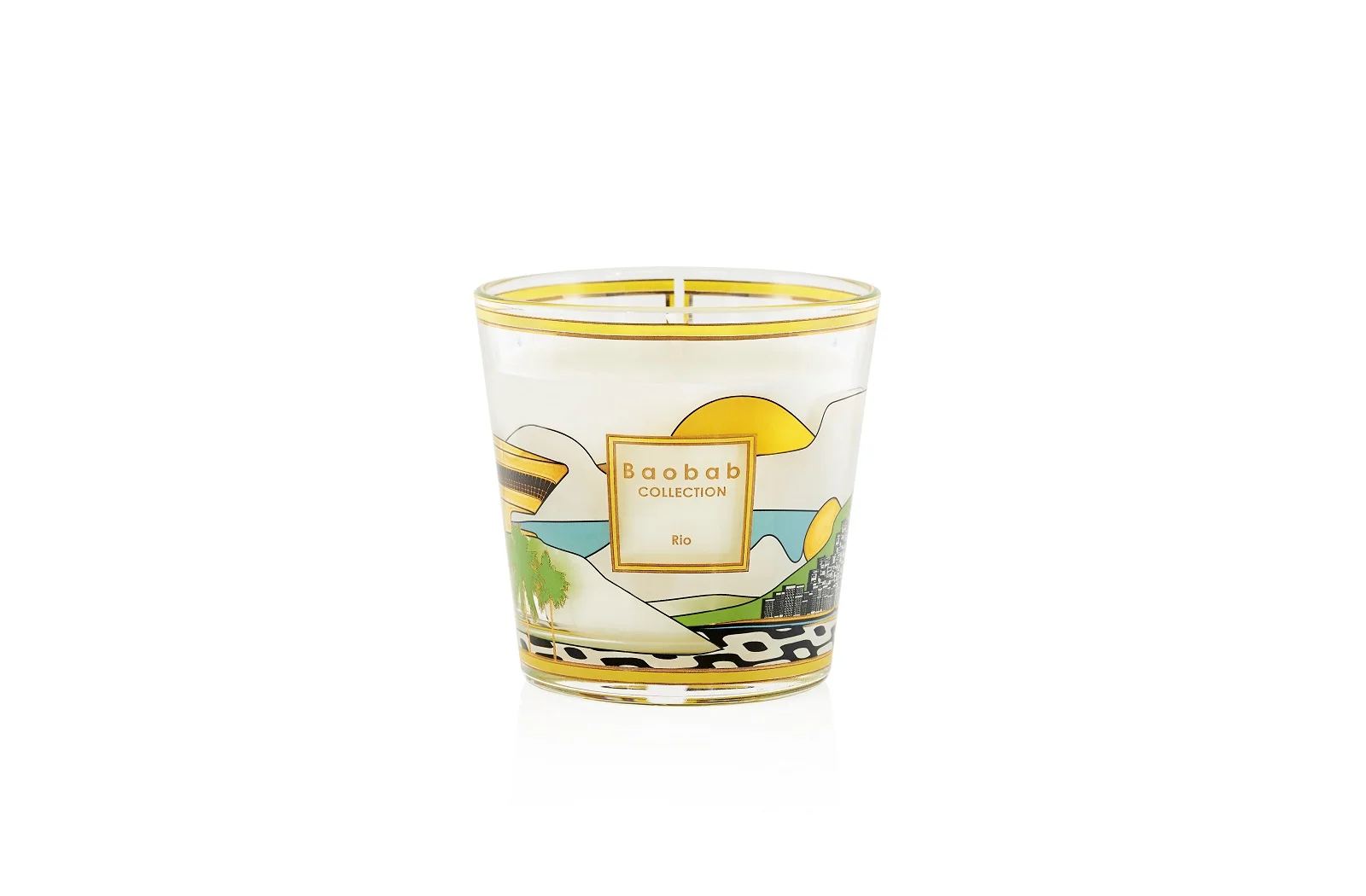 Baobab Duftkerze My First Baobab Rio – aus Bergamotte, grünem Tee und MoschusDie Duftkerze Rio ist mit einem goldenen und farbigen Siebdruck überzogen, der die mythische Architektur dieser Metropole widerspiegelt. Man erkennt das Museum für zeitgenössische Kunst von Miteroi, das vom Architekten Oscar Niemeyer entworfen wurde, die Kopfsteinpflaster, die den Strand von Ipanema säumen, und einen weichen Horizont mit einem Blick auf den Zuckerhut Felsen. Sein Duft aus Bergamotte, grünem Tee und Moschus entführt Sie in die Wärme dieser tropischen Stadt.Geschenktasche gratis!! Bei uns bekommen Sie zu jeder Bestellung von Duftkerzen, Raumduft-Diffusern oder den Mini-Totems von Baobab eine schicke Baobab-Geschenktasche dazu. Abmessungen, Brenndauer und Gewicht der verschiedenen Größen: