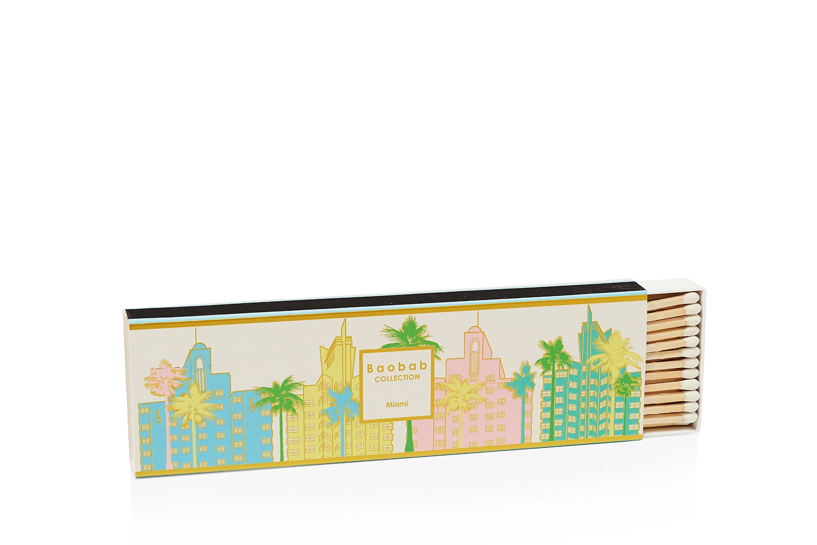 Baobab Streichhölzer Cities MiamiDie 22cm langen Streichhölzer ermöglichen nicht nur ein sicheres und schnelles Anzünden von großen Kerzen, sondern befinden sich in einer dekorativen Streichholzschachtel, deren Aufdruck mit dem facettenreichen Muster der Serie Miami verziert ist. Wegen dieses ungewöhnlichen und schönen Aufdrucks eignet sich die Streichholzschachtel auch ideal zur Zierde. CITIES – die KollektionLassen Sie sich entführen in eine Welt faszinierender Bauwerke und tauchen Sie ein in das Flair ausgewählter Städte! Das Design der Kollektion CITIES ist geprägt von der Architektur schöner Gebäude sowie der typischen Umgebung und den charakteristischen Merkmalen interessanter Ortschaften. Die Düfte sind nostalgisch und geheimnisvoll und inspiriert vom Vibe dieser Orte. Jede Serie der Kollektion CITIES hat ihren ganz eigenen Charme.
