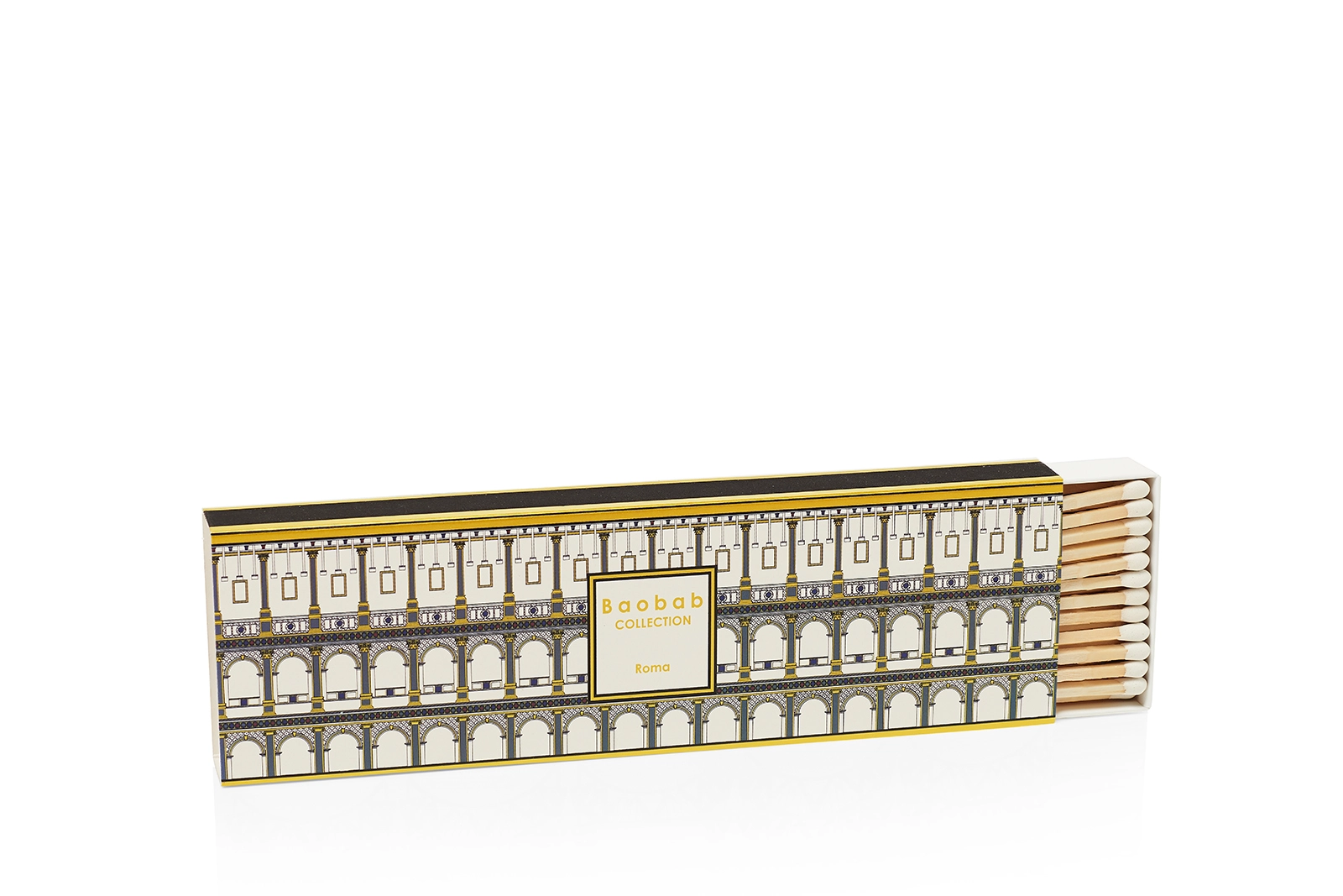 Baobab Streichhölzer Cities RomaDie 22cm langen Streichhölzer ermöglichen nicht nur ein sicheres und schnelles Anzünden von großen Kerzen, sondern befinden sich in einer dekorativen Streichholzschachtel, deren Aufdruck mit dem facettenreichen Muster der Serie Roma verziert ist. Wegen dieses ungewöhnlichen und schönen Aufdrucks eignet sich die Streichholzschachtel auch ideal zur Zierde.  CITIES – die KollektionLassen Sie sich entführen in eine Welt faszinierender Bauwerke und tauchen Sie ein in das Flair ausgewählter Städte! Das Design der Kollektion CITIES ist geprägt von der Architektur schöner Gebäude sowie der typischen Umgebung und den charakteristischen Merkmalen interessanter Ortschaften. Die Düfte sind nostalgisch und geheimnisvoll und inspiriert vom Vibe dieser Orte. Jede Serie der Kollektion CITIES hat ihren ganz eigenen Charme.