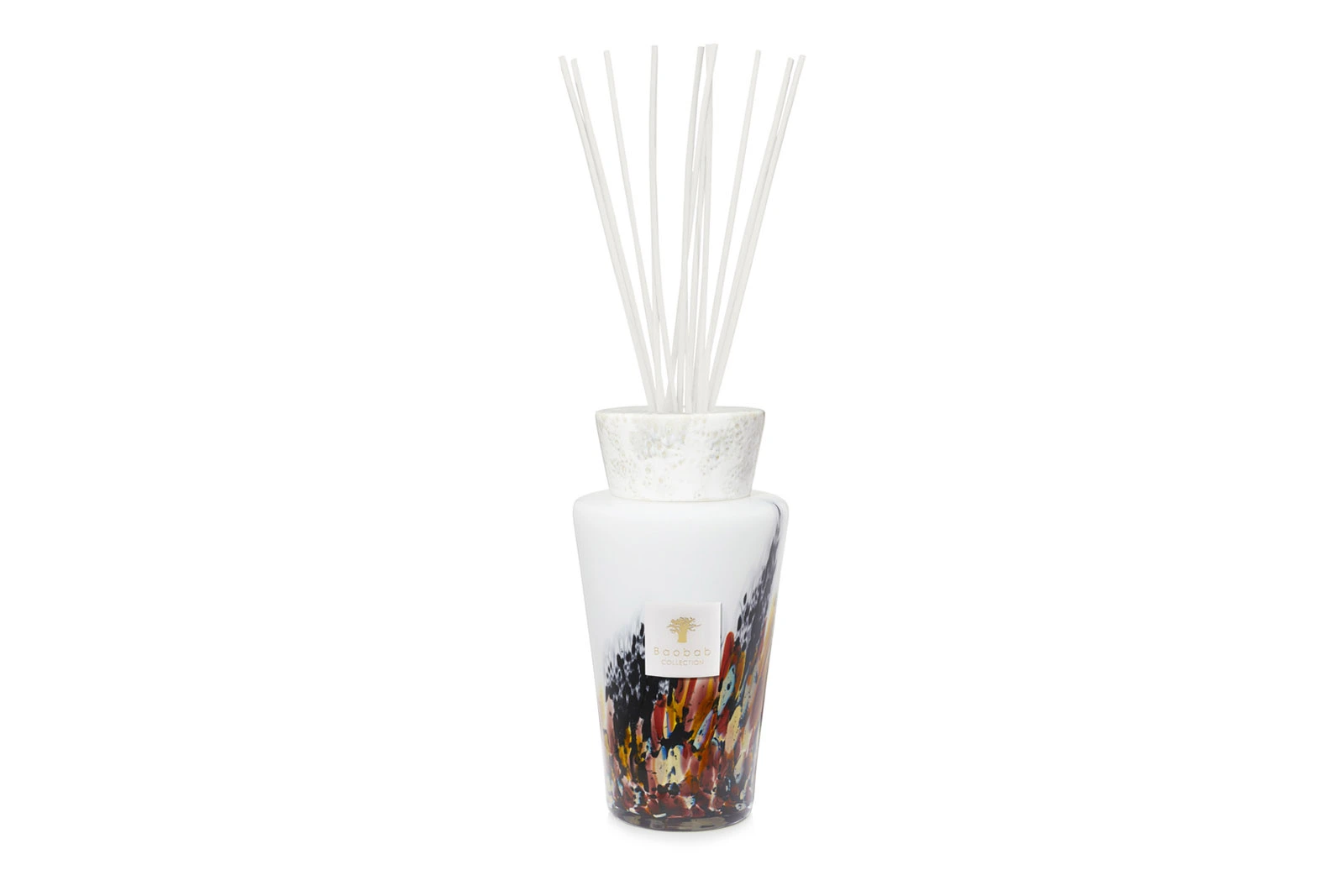 Baobab Totem Luxury Diffuser Rainforest Tanjung – mystisch und erdend mit Zedernholz, Guajak-Holz und GalbanumharzVerbreiten Sie in Ihren Räumen ein Naturambiente, das belebend und zugleich erdend wirkt: Die Duftrichtung Tanjung aus der Rainforest-Kollektion von Baobab ist dem Tanjung-Nationalpark auf Südborneo mit seinen Urwaldgebieten gewidmet, in denen Orang-Utans, Paradiesvögel und große Warane leben.Die Duftkomposition mit Zedernholz, Guajak-Holz und Galbanumharz wirkt belebend und erdend mit einer mystischen Note.Der edle Flakon besteht aus weißem, mundgeblasenem Opalglas mit eingearbeiteten Glasstücken in Brauntönen, Dunkelgrau und Hellgelb. Der handgearbeitete Aufsatz ist aus Keramik.Erhältlich sind die Raumduft-Spender dieser Serie in den Größen 5l, 2l und in der Mini Totem-Variante mit 250 ml Inhalt (mit doppelter Füllung). Damit passen sie sowohl in weitläufige Räumlichkeiten als auch in kleine Badezimmer.GESCHENK-IDEE:Eine tolle Geschenkidee sind die Mini-Diffuser designt im luxurösen Stil der jeweiligen Kollektion und wunderschönem handgefertigten Keramikaufsatz.Dieser besondere, edle kleine Flakon wird in einer hochwertigen Geschenkbox mit Magnetverschluss geliefert, zusammen mit 8 Duftstäbchen und einer Duft-Nachfüllflasche. Dazu die schicke Baobab-Gescheinktasche!Sie sind in 3 verschiedenen Größen verfügbar:250 ml (mit 8 Duftstäbchen und 250 ml Duft zum Nachfüllen)2 l (mit 10 Duftstäbchen)5 l (mit 12 Duftstäbchen)Geschenktasche gratis!! Bei uns bekommen Sie zu jeder Bestellung von Duftkerzen bis Max 24 und Raumduft-Diffusern oder den Mini-Totems bis 2 Liter von Baobab eine schicke Baobab-Geschenktasche dazu. Funktionsweise und VerwendungDie Diffuser-Stäbchen verteilen den Duft durch die Kapillaren des Holzes von alleine im Raum, geräuschlos und ohne Strom. Anders als bei einem Sprühgerät legt sich bei diesem Diffuser auch kein Feuchtigkeitsnebel auf Ihre Möbel und Einrichtung. Um die Stärke des Duftes zu bestimmen, variieren Sie einfach die Menge der Stäbchen, die Sie im Raumduft-Spender platzieren. Um eine sofortige Intensitätserhöhung des Duftes zu bekommen, drehen Sie die Diffuser-Stäbchen einfach um.Der Flakon kann ganz einfach wiederbefüllt werden – Nachfüllpacks finden Sie ebenfalls hier im Shop.Die angegebene Duftdauer ist ein Richtwert und ist von vielen Faktoren abhängig, wie zum Beispiel der Raumtemperatur und Größe der Räume und von den Belüftungsbedingungen. RAINFOREST – die KollektionDie Rainforest-Duftkollektion von Baobab ist den drei größten Regenwaldgebieten der Welt gewidmet: dem Amazonas, den indonesischen Regenwäldern und dem Kongo-Regenwald in Afrika. Das Design entspricht den Farben der Flora und Fauna in den Regenwäldern. Die Duftrichtungen Amazonia, Tanjung und Mayumbe laden Sie auf mit der Energie der Natur – harmonisierend, belebend, mystisch.