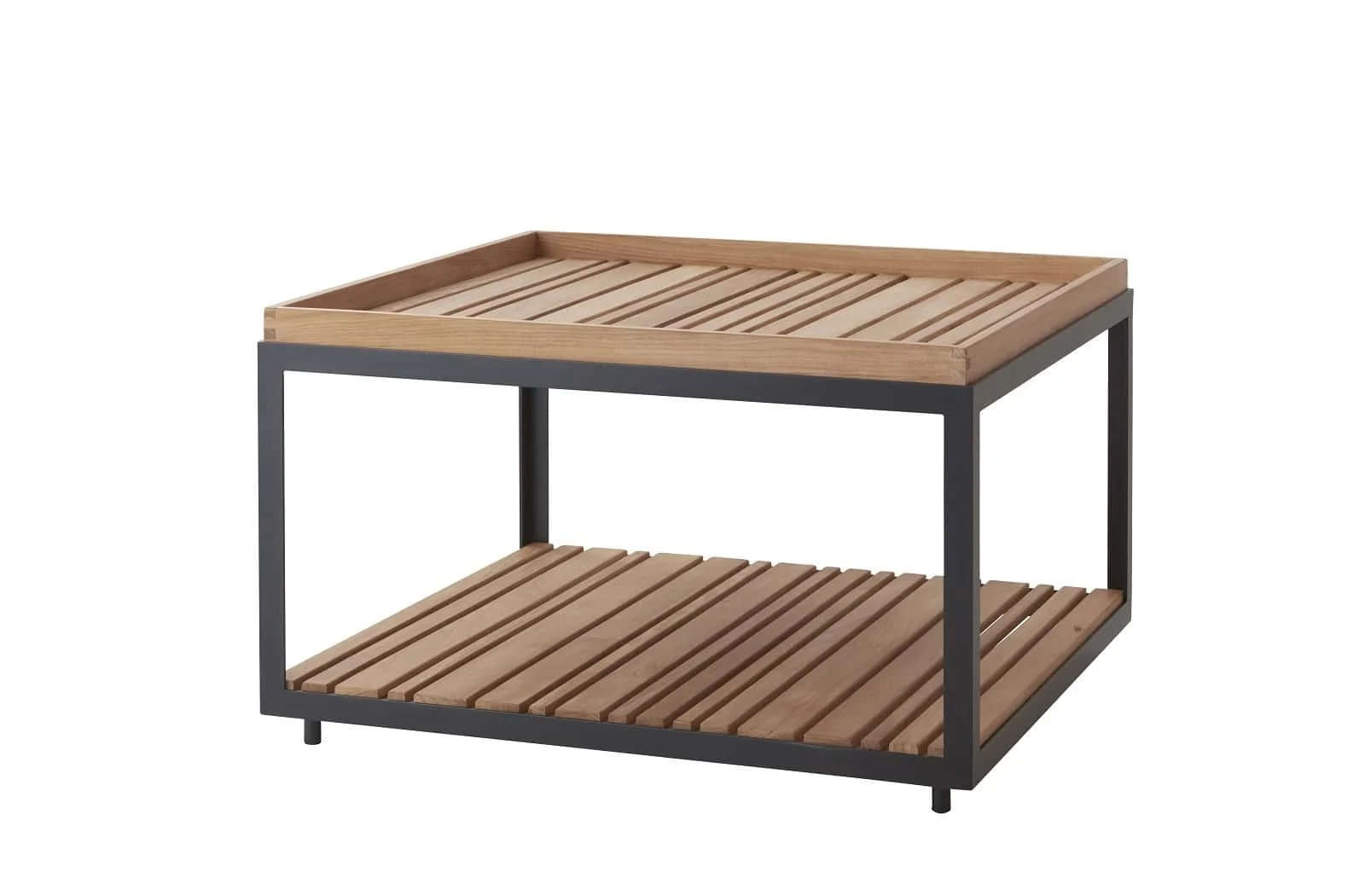 Cane-line Level Couchtisch groß 79x79 cm | Teak & Lava Grey | Minimalistischer Beistelltisch mit Ablage | SVLK-zertifiziert