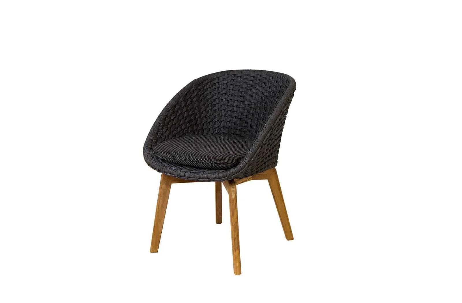 Cane-line Peacock Gartenstuhl, Dunkelgrau mit Teakholzbeinen, Wetterfest, Modern, Bequem, 61x61x81 cm, Robuste Outdoor-Möbel