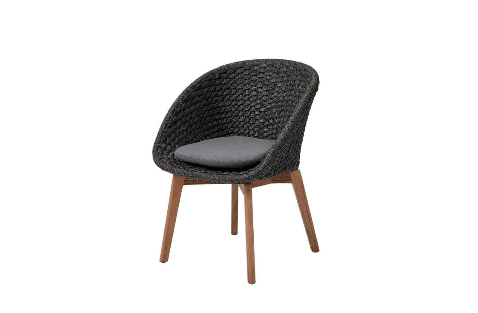 Cane-line Peacock Gartenstuhl Dark Grey mit Teakholzbeinen & Cane-line Natté Kissen - Wetterfest, Modern, Komfortabel - 61x61x81 cm