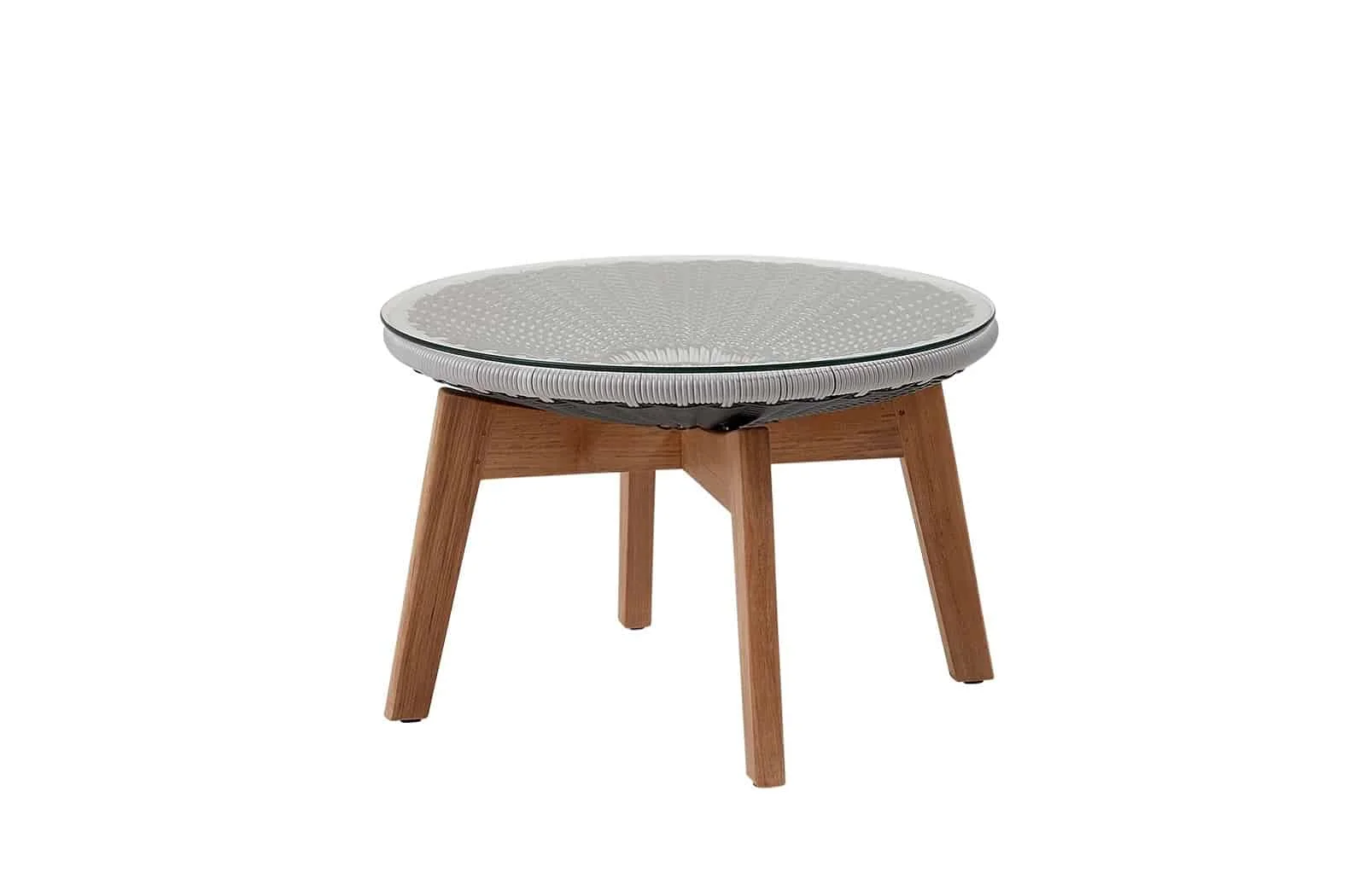 Cane-line Peacock Hocker/Beistelltisch in Hellgrau mit Glasplatte – Wetterfest, UV-beständig, modernes Design für Outdoor & Garten