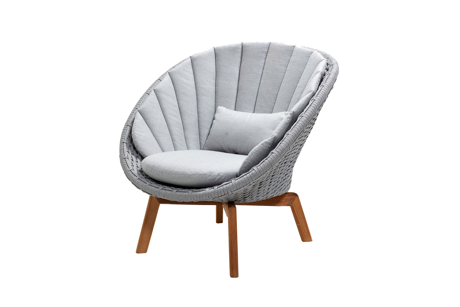 Cane-line Peacock Loungesessel mit Teakholz-Beinen, Soft Rope in Hellgrau - Wetterfest, Modern, Komfortabel, 91x93x87 cm
