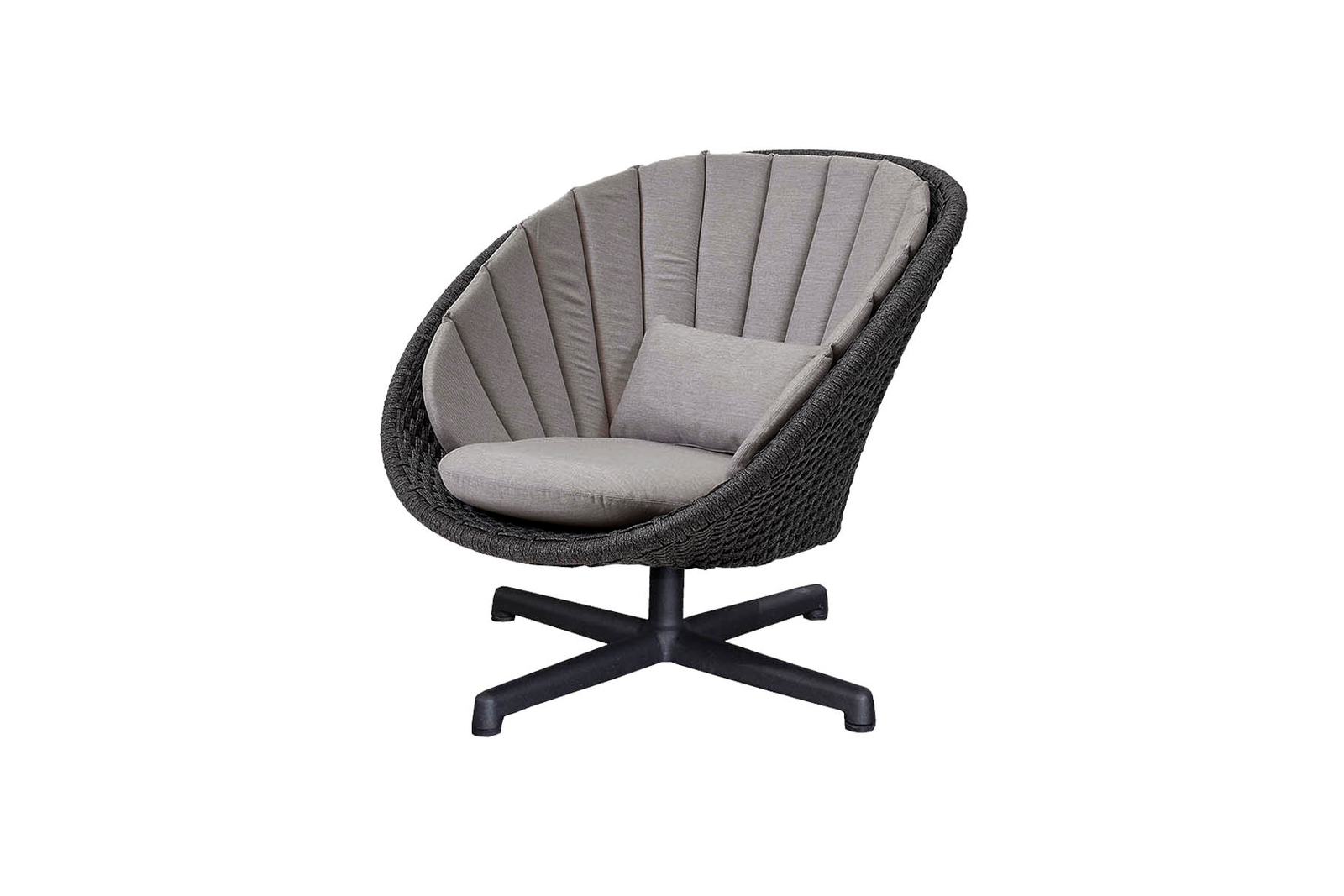 Cane-line Peacock Loungesessel drehbar Taupe mit Kissen – Witterungsbeständig, Komfortabel, Modernes Design für Garten, Balkon & Terrasse