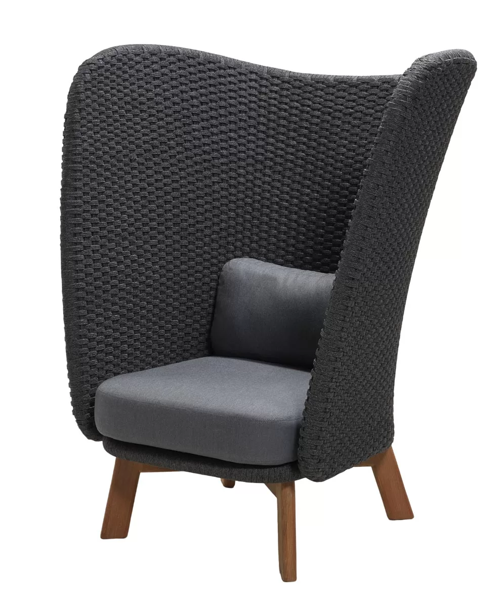 Cane-line Peacock Wing Highbacksessel mit Teakholzbeinen & Kissensatz – wetterfest, modern, bequem, 102cm Breite, ideal für den Garten.