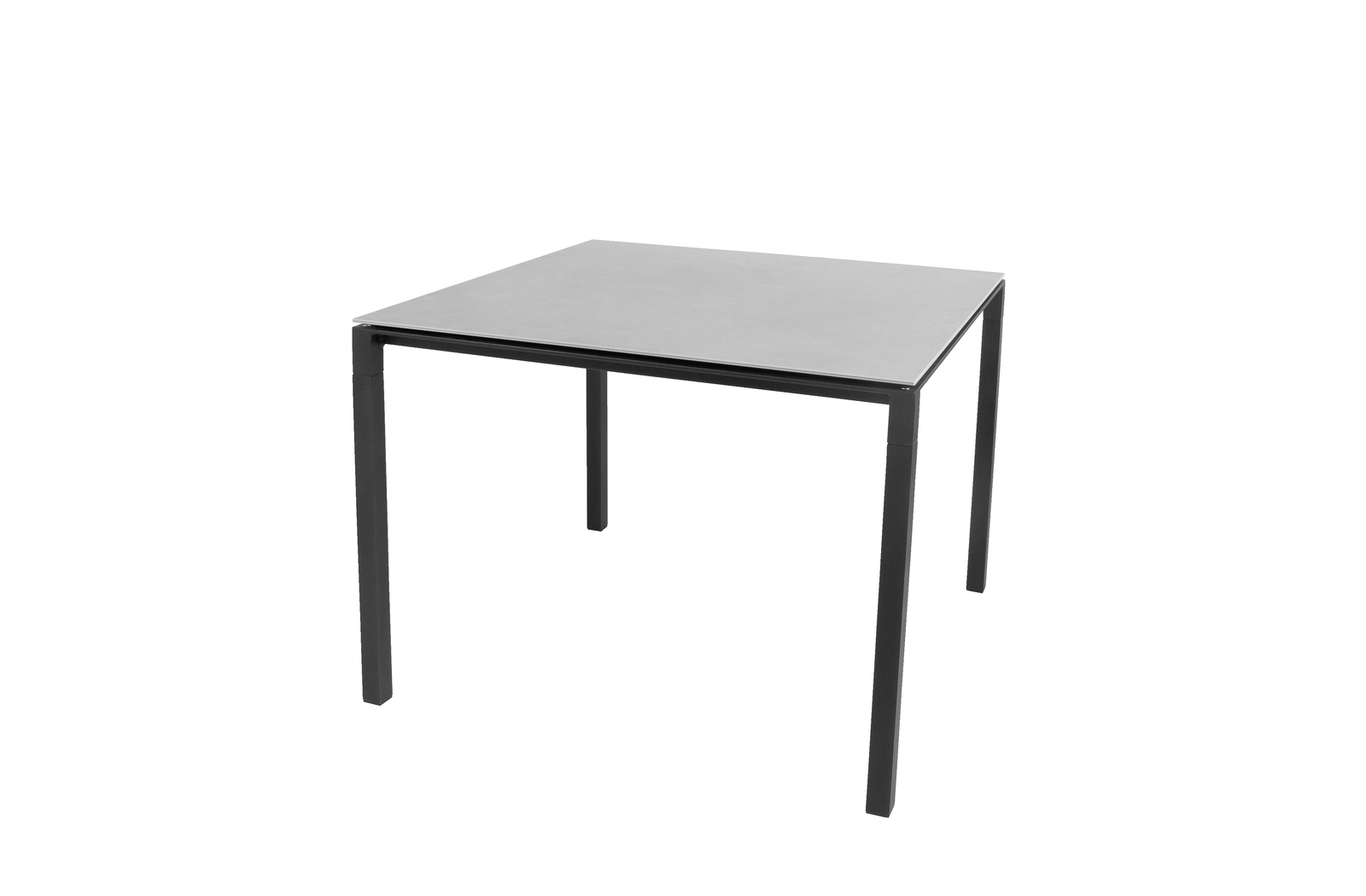 Cane-line Pure Tischgestell Aluminium Lava Grey mit Keramik-Tischplatte 100×100 cmDesign by Foersom & Hiort-Lorenzen MDDDer minimalistische und moderne Tisch Pure wurde vom dänischen Designerpaar Foersom & Hiort-Lorenzen MDD entworfen. Der Rahmen wird aus hochwertigem Aluminium gefertigt. Die Tischplatten sind je nach Ihren Vorstellungen in mehreren Ausführungen erhältlich. Der Tisch Pure ist leicht zu pflegen, kratzfest und kann mit einem feuchten Tuch abgerieben werden. Der Tisch ist UV-beständig, weshalb er sich ideal für den Gebrauch im Freien eignet und bei jeder Witterung draußen stehen kann. Cane-lineCane-Line steht mit seiner einzigartigen Technologie und seinem stetigem Bestreben dafür ein, den höchstmöglichen Komfort für seine Kunden zu erreichen. Mit Cane-Line wird das Leben gemütlich. Gemütliche Sitze mit hoher Funktionalität und schnell trocknende, pflegeleichte, robuste und trotzdem angenehme Stoffe und langlebige Materialien. Möbel von Cane-Line können das ganze Jahr überall auf der Welt im Freien stehen. Um die Lebensdauer noch weiter zu verlängern, wird empfohlen, sie trotzdem in Innenräumen überwintern zu lassen und regelmäßig zu reinigen und zu pflegen.Die Outdoor-Kollektionen des Hauses Cane-line sprechen eine moderne und vor allem robuste Sprache. Mit modernen Farben und angenehmen Formen kann die Produktionsfirma Cane-line vielen ein Lächeln ins Gesicht zaubern. Auch hier bekommen Sie die zahlreichen Produkte des Herstellers zu einem besonders angenehmen Preis.