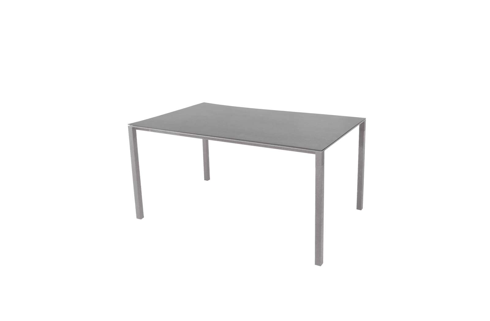 Cane-line Pure Tischgestell Aluminium Light Grey mit Keramik-Tischplatte 150×90 cmDesign by Foersom & Hiort-Lorenzen MDDDer minimalistische und moderne Tisch Pure wurde vom dänischen Designerpaar Foersom & Hiort-Lorenzen MDD entworfen. Der Rahmen wird aus hochwertigem Aluminium gefertigt. Die Tischplatten sind je nach Ihren Vorstellungen in mehreren Ausführungen erhältlich. Der Tisch Pure ist leicht zu pflegen, kratzfest und kann mit einem feuchten Tuch abgerieben werden. Der Tisch ist UV-beständig, weshalb er sich ideal für den Gebrauch im Freien eignet und bei jeder Witterung draußen stehen kann. Der Tisch Pure in der Größe 150×90 cm ist ideal für kleinere Außenbereiche, in denen nur wenig Platz ist. Cane-lineCane-Line steht mit seiner einzigartigen Technologie und seinem stetigem Bestreben dafür ein, den höchstmöglichen Komfort für seine Kunden zu erreichen. Mit Cane-Line wird das Leben gemütlich. Gemütliche Sitze mit hoher Funktionalität und schnell trocknende, pflegeleichte, robuste und trotzdem angenehme Stoffe und langlebige Materialien. Möbel von Cane-Line können das ganze Jahr überall auf der Welt im Freien stehen. Um die Lebensdauer noch weiter zu verlängern, wird empfohlen, sie trotzdem in Innenräumen überwintern zu lassen und regelmäßig zu reinigen und zu pflegen.Die Outdoor-Kollektionen des Hauses Cane-line sprechen eine moderne und vor allem robuste Sprache. Mit modernen Farben und angenehmen Formen kann die Produktionsfirma Cane-line vielen ein Lächeln ins Gesicht zaubern. Auch hier bekommen Sie die zahlreichen Produkte des Herstellers zu einem besonders angenehmen Preis.
