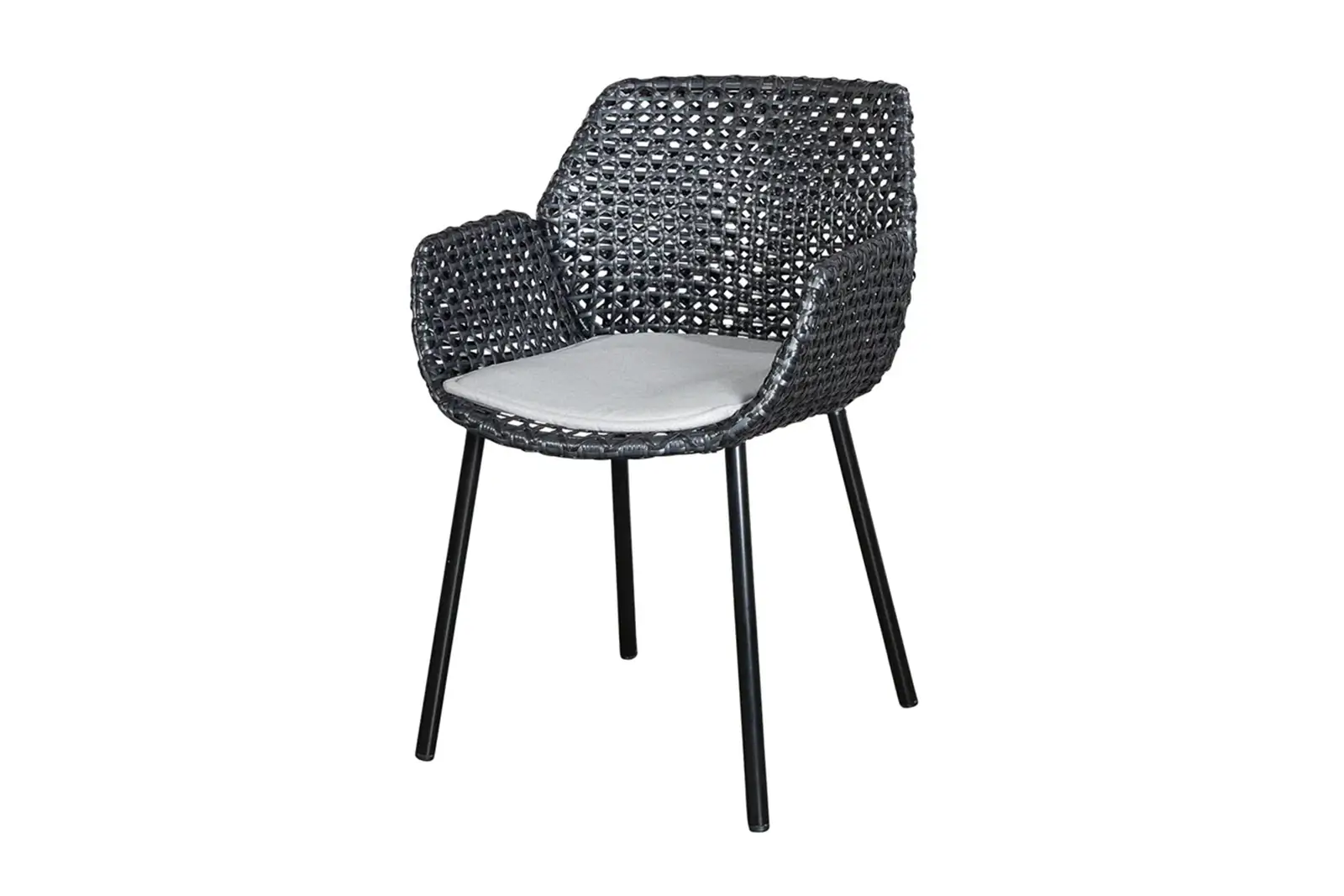 Cane-line Vibe Gartenstuhl mit Armlehne, Schwarz/Graphit, inkl. Kissen Hellgrau – Wetterfest, bequem, modernes Design von Welling/Ludvik