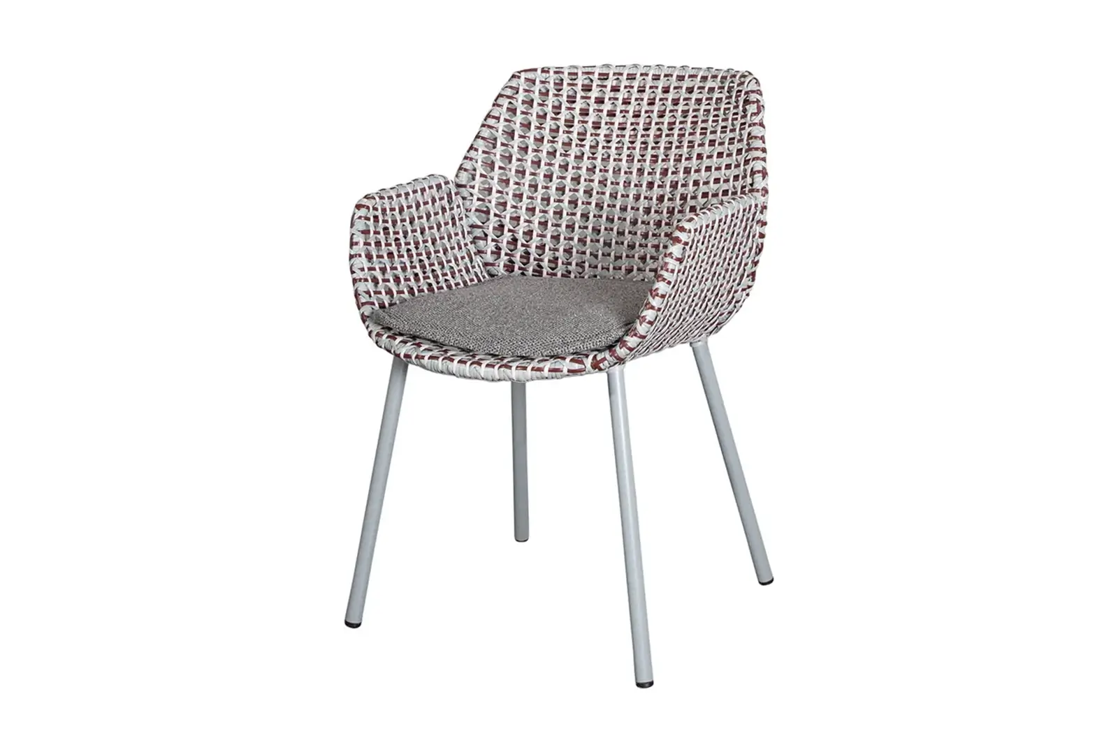 Cane-line Vibe Gartenstuhl mit Armlehne, Light Grey/Bordeaux/Dusty Rose, inkl. Kissen Dark Grey – Wetterfest, Komfortabel, Design von Welling/Ludvik