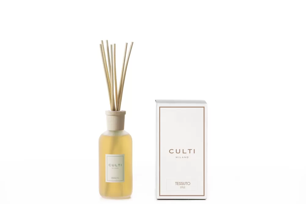 Culti Milano Diffuser Stile Tessuto 250 mlGeblüht: Jasmin – Cassis – Baumwolle – weißer Moschus (romantisch, süß und zart, aber auch fesselnd und intensiv)Tessuto entstand am Comer-See als Hommage an die große Textiltradition dieser Region: Es ist ein Duft, der von kostbaren, feinen, in der Sonne aufgehängten Stoffen erzählt, mit einer fast haptischen Textur. Blätter von schwarzer Johannisbeere, Baumwollblüten und Bergamotte beschreiben die frische Reinheit der Stoffe, gestützt von einem entschlossenen Geflecht von Jasmin und Moschus. Culti MilanoCulti Milano erfand den dauerhaften Raumduft dank Holzstäbchen. Seit 1990 erfreut die italienische Firma vor allem die Kenner guter Düfte und edlen Designs. Culti Milano betrachtet seine Raumdüfte als Einrichtungsobjekt. Deshalb setzt die Marke auf handwerkliche Herstellung und auf dezente Düfte. Sie sollen die Stimmung des Nutzers heben, aber dabei nur zart in der Nase liegen. 2016 erfand sich die Marke neu mit Produkten, die dem Geist der Marke treu bleiben und neue Trends setzen.
