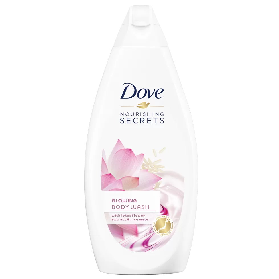 Dove Glowing body wash lotusbloem extract en rijstwater in een zuiverende mix die je huid een gezonde gloed geeft. Ook verkrijgbaar in een 500ml.
