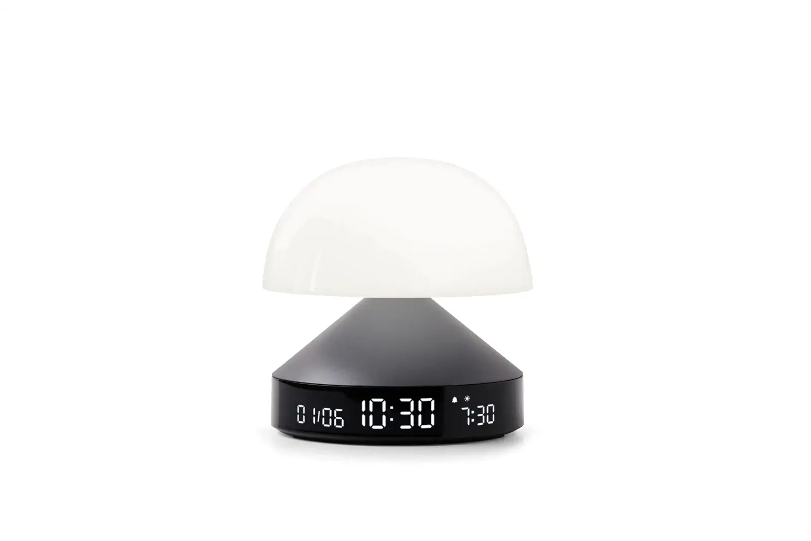 LEXON Mina Sunrise – für das sanfte ErwachenDie Mina Sunrise ist der perfekte Begleiter am Bett und überzeugt durch ihre vielseitigen Funktionen. Mit einem Sonnenaufgangssimulator weckt sie sanft mit allmählich ansteigender Helligkeit und ermöglicht so einen ruhigen Start in den Tag.Der Wecker verfügt über 5 voreingestellte Melodien, darunter Naturgeräusche, die das Aufwachen noch angenehmer machen. Für einen entspannten Abend sorgt die Sonnenuntergangssimulation für ein friedliches Einschlafen. Zur Auswahl stehen 9 verschiedene LED-Farben, die an die jeweilige Raumstimmung angepasst werden können.Die kompakte Form, der schlanke Aluminiumfuß und das hochwertige Display machen Mina Sunrise zu einem eleganten und praktischen Gerät, das perfekt auf den Nachttisch passt. Mit nur einem Knopfdruck lässt sich das Licht ein- und ausschalten, die LED-Farbe wechseln oder die Helligkeit regulieren.Ob zum Lesen im Bett, für eine beruhigende Lichtstimmung vor dem Schlafengehen oder für ein erholtes Aufwachen am Morgen, die Mina Sunrise ist das richtige Gerät, um all dies mit Stil zu tun. Überzeugen Sie sich selbst von dieser 3-in-1-Lampe und starten Sie perfekt in den Tag!- Sonnenaufgangswecker- Reines VA-LCD-Display- Simulation von Sonnenaufgang und Sonnenuntergang- 5 Melodien & natürliche Klänge- Lampe mit 9 LED-Farben- Dimmer- Touch-Steuerung