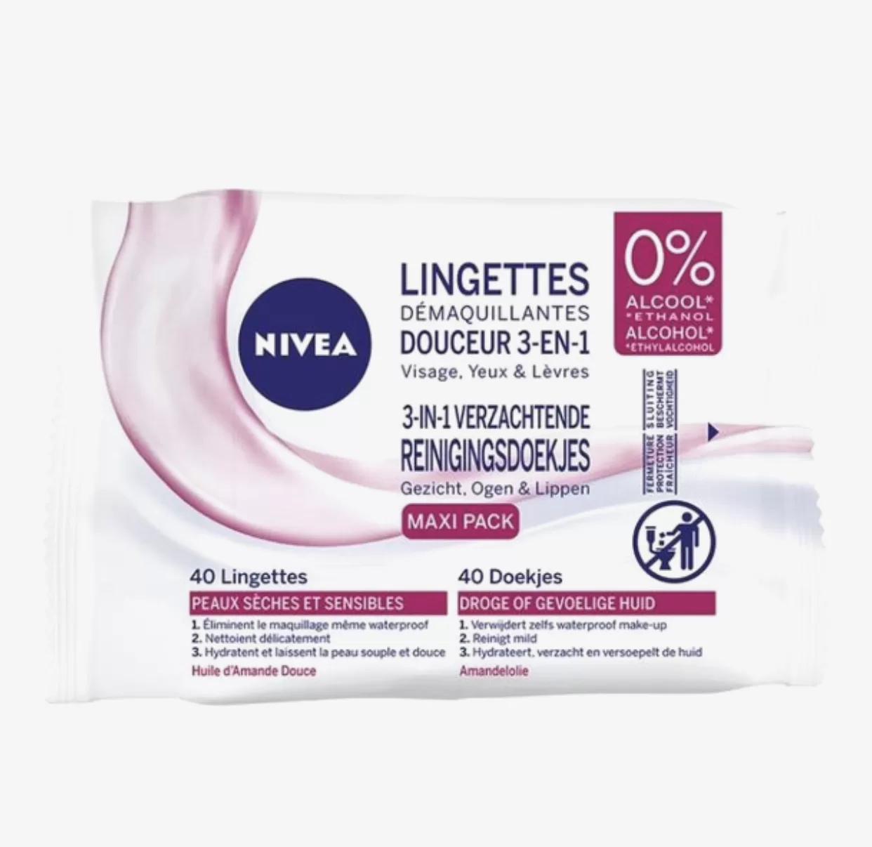 Nivea 3-in-1 verzachtende reinigingsdoekjes, verrijkt met Amandelolie