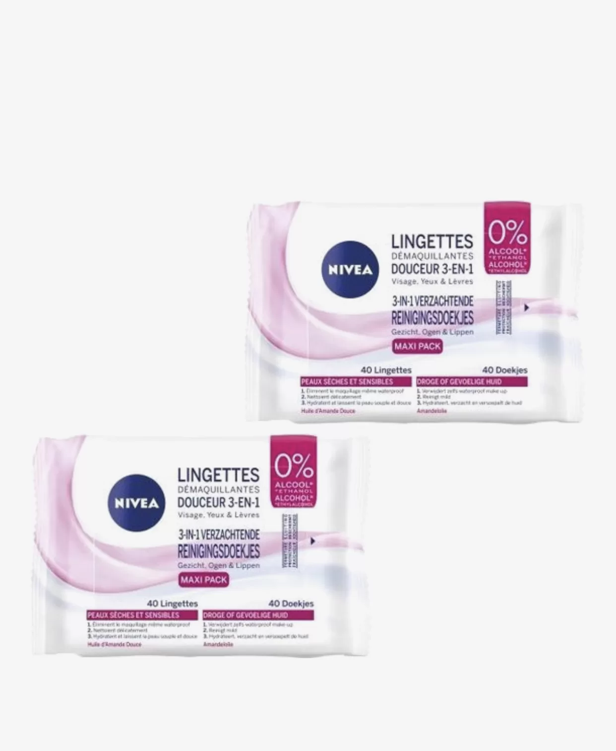 Nivea 3-in-1 verzachtende reinigingsdoekjes, verrijkt met Amandelolie