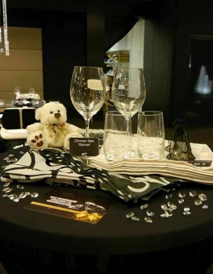 1x Läufer braun, 2x Wasserglas „Stone“
