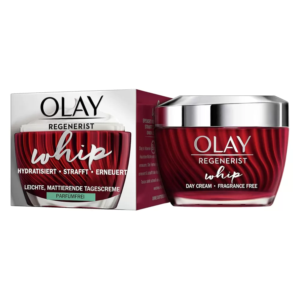 Hernieuw de natuurlijke gloed van je huid met de Olay Regenerist Whip Dagcrème.