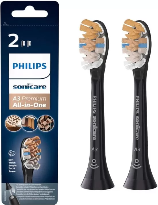 De A3 Premium All-in-One-opzetborstel past perfect bij jouw Philips Sonicare opklikbaar handvat (zie de onderstaande lijst). Klik de opzetborstel vast of haal hem er eenvoudig af voor gemakkelijk vervangen en schoonmaken.