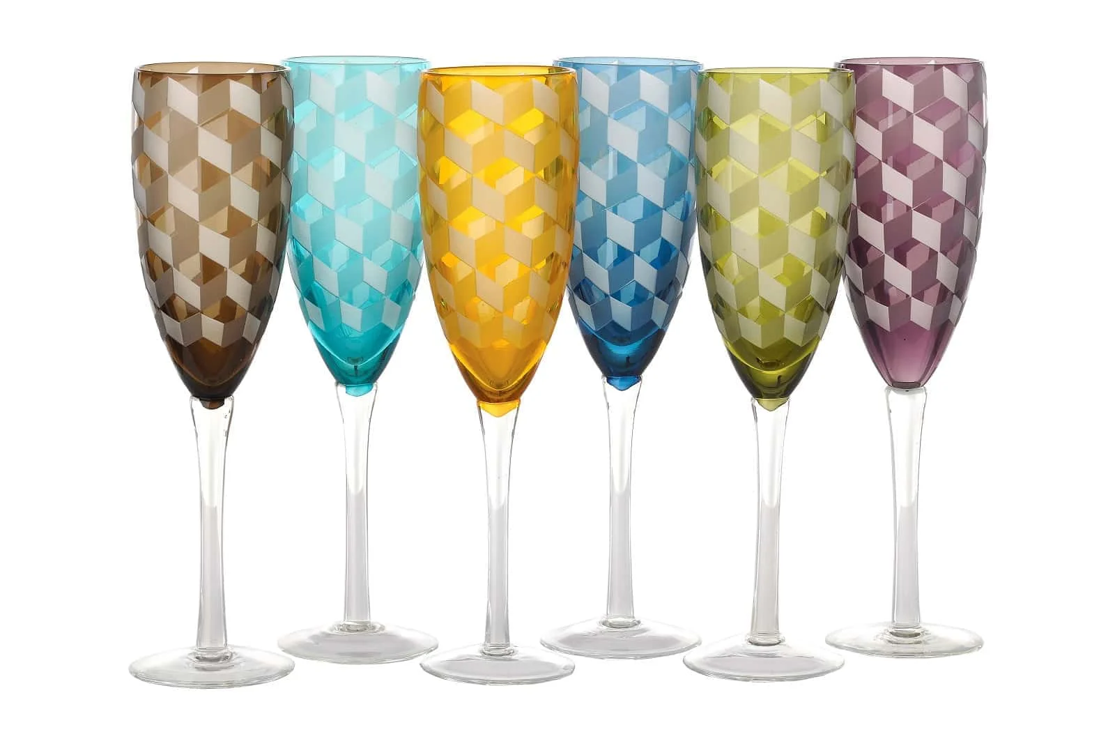 Pols Potten Blocks Champagnergläser 6er Set – Hochwertiges, vollfarbiges Glas mit einzigartigem Design für festliche Anlässe