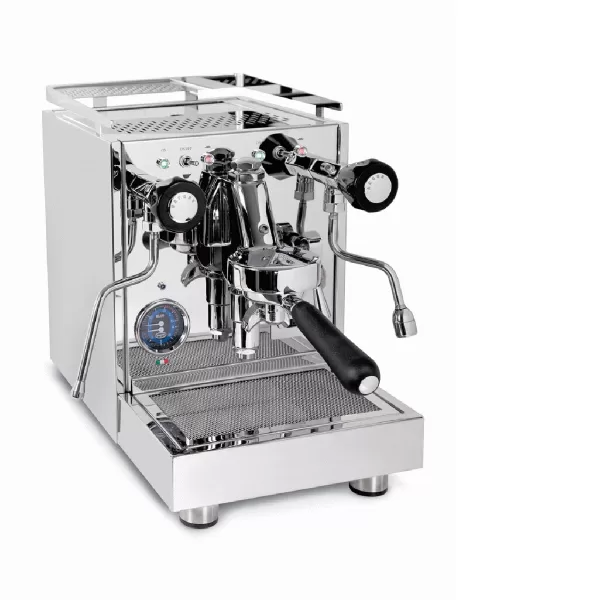 STONE Plus in Schwarz – Siebträgermaschine – Zweikreiser – Stone Plus in Schwarz – SiebträgermaschineDieser kompakte Siebträgermaschine bietet alles, was das Herz eines anspruchsvollen Kaffeeliebhabers begehrt. Trotz ihrer geringen Größe überzeugt die Stone Plus mit herausragender Leistung und passt sogar in die kleinste Küche. Als Zweikreiser noch mehr Flexibilität Mit dem hochwertigen Zweikreiser-System überzeugt die Stone Plus als moderne Siebträgermaschine und macht das Arbeiten an ihr noch etwas flexibler. Die getrennten Kreisläufe des Boilers aus Kupfer können beide gleichzeitig oder direkt hintereinander bezogen werden, wodurch die Maschine gleich mit der richtigen Temperatur bereit für unvergleichliche Kaffeemomente ist. Für den Kaffeebezug stehen 1,5 Liter zur Verfügung, für den Dampf 0,8 Liter. PID-Regulierung und Vibrationspumpe Beide Features machen die solide Espressomaschine zur absoluten Komfortmaschine für jeden Profi-Barista. Durch die PID-Regulierung bleibt nach einmaliger Temperatureinstellung die Brühtemperatur konstant und der Kaffee voller leckerer Aromen und feinsten Geschmacksnuancen. Der erste Bezug startet über den Hebel – einmal gedreht, kann der Genuss beginnen. Die leistungsstarke Vibrationspumpe arbeitet dabei mit 12 bar Druck. Das Highlight in der Küche Schwarz, zeitlos und edel passt die Stone Plus nicht nur optisch in jede Küche – mit ihrer kompakten Bauart erfüllt sie den Traum von der eigenen Barista-Küche. Über die Drehschalter lässt sich die Maschine einfach und bequem bedienen sowie nach kurzer Aufheizzeit von 10 Minuten starten. Egal, was der Tag verlangt, die Stone Plus ist mit ganzen 1200 Watt Leistung bereit dafür. Technische Merkmale: – Max. Leistung in Watt: 1200- Spannung in Volt: 230- Aufheizzeit (in min): 10:00- Pumpendruck: 12 bar- Bedienung durch: Drehregler- Durchmesser Siebträger: 58mm- Brühgruppentyp: Ringbrühgruppe- Anzahl der Brühgruppen: 1- Boilertyp: Zweikreiser- Volumen Kaffeeboiler: 1,5l- Volumen Dampfboiler: 0,8l- Pumpentyp: Vibrationspumpe- Volumen Wassertank: 1,2l- Integriertes Mahlwerk: Nein
