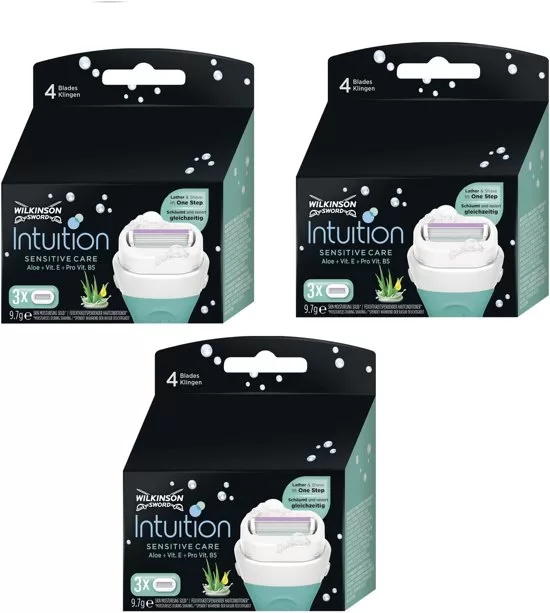 Wilkinson Intuition Sensitive Care bevat drie scheermesjes voor het scheerapparaat Wilkinson Intuition Sensitive Care. Deze mesjes hebben een vijf koppige basis waardoor uw gladder scheert. Ook zorgt de drievoudige werking voor bescherming van de huid. Verrijkt met verzachtende aloe vera en vitamine E, ter verzorging van de gevoelige huid.